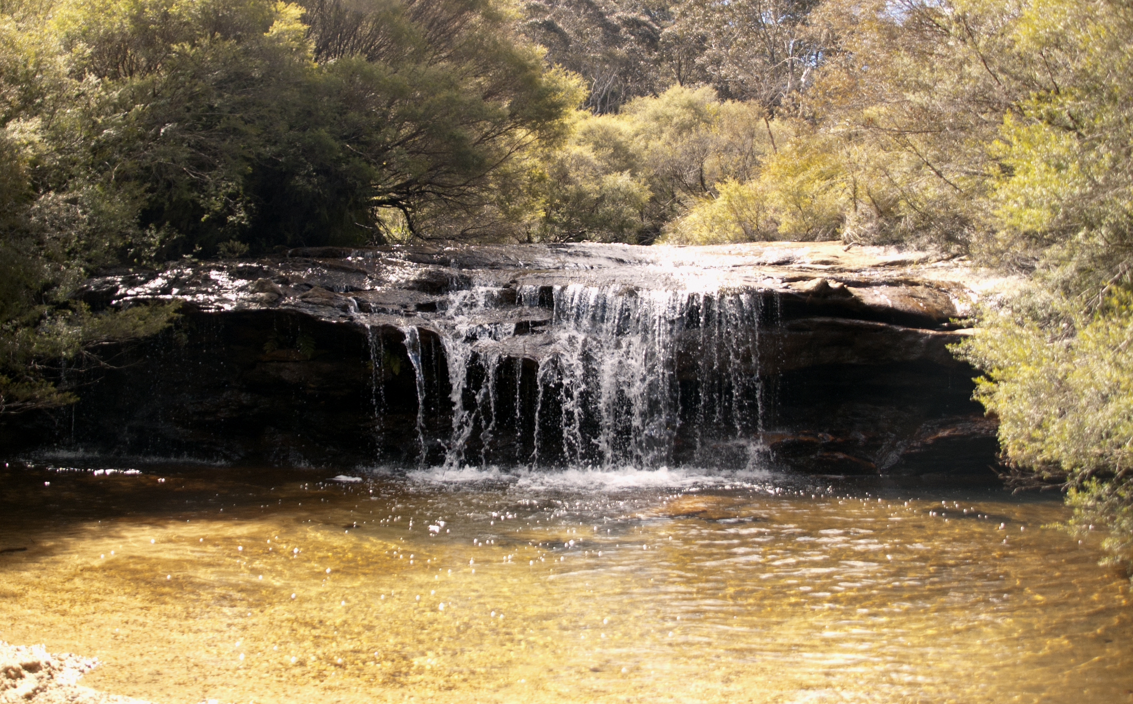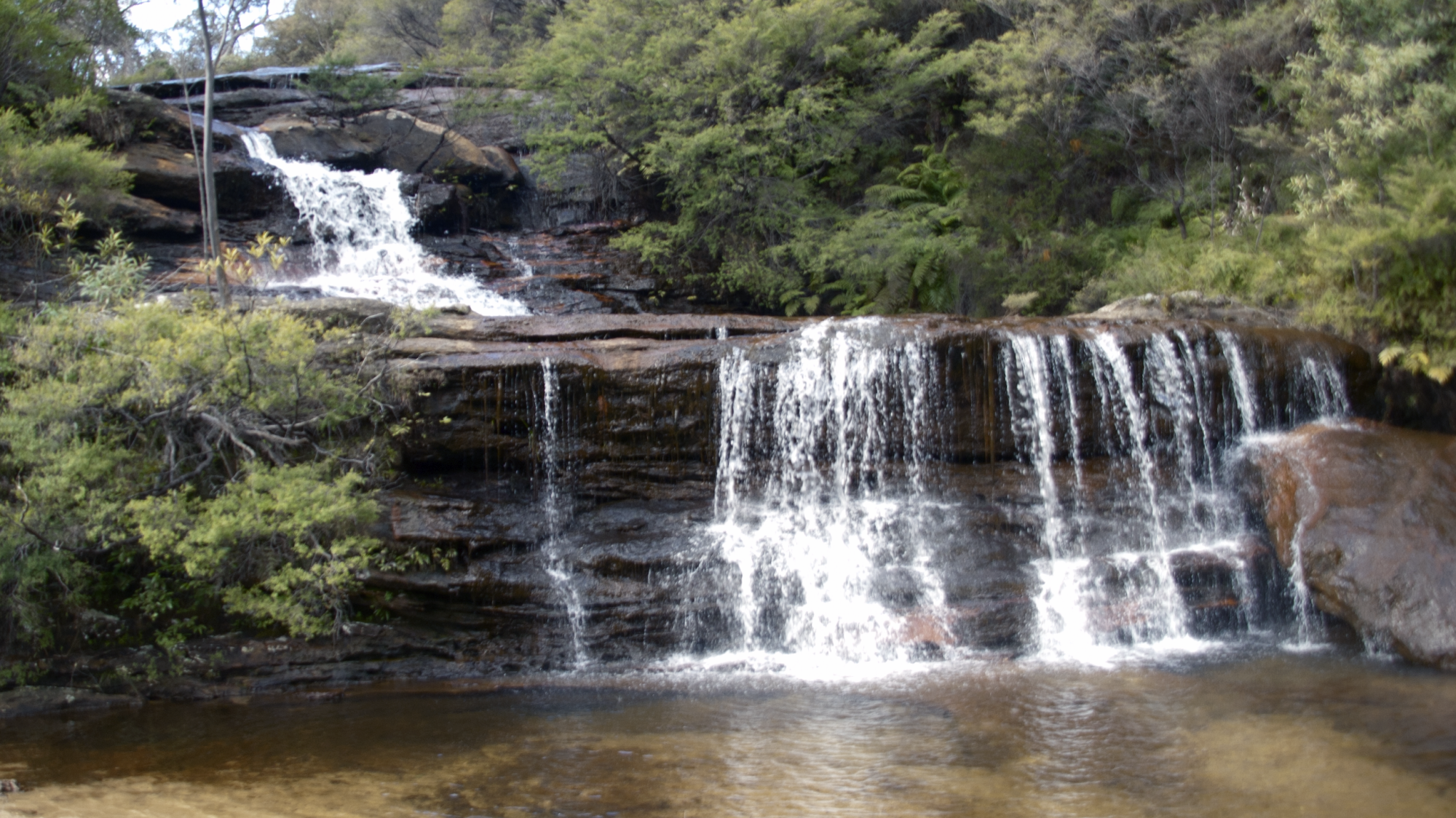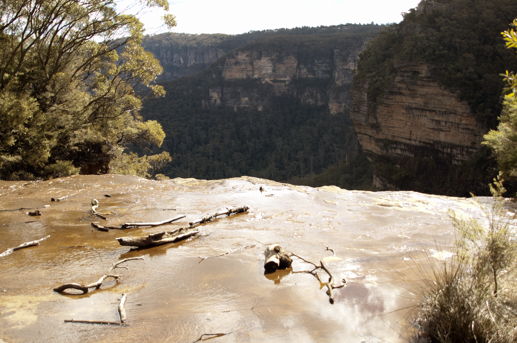 There is a path that walks across the top of Wentworth Falls. These waterfalls are are the top, facing away from the valley.