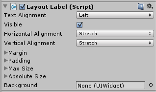 LayoutLabel is an implementation of LayoutCapable meant to give UILabel from NGUI layout functionality. Since LayoutLabel uses UILabel to display text, the UILabel needs to be set up with a Font before it will show anything. It has one property on top of what LayoutCapable has: Text Alignment.